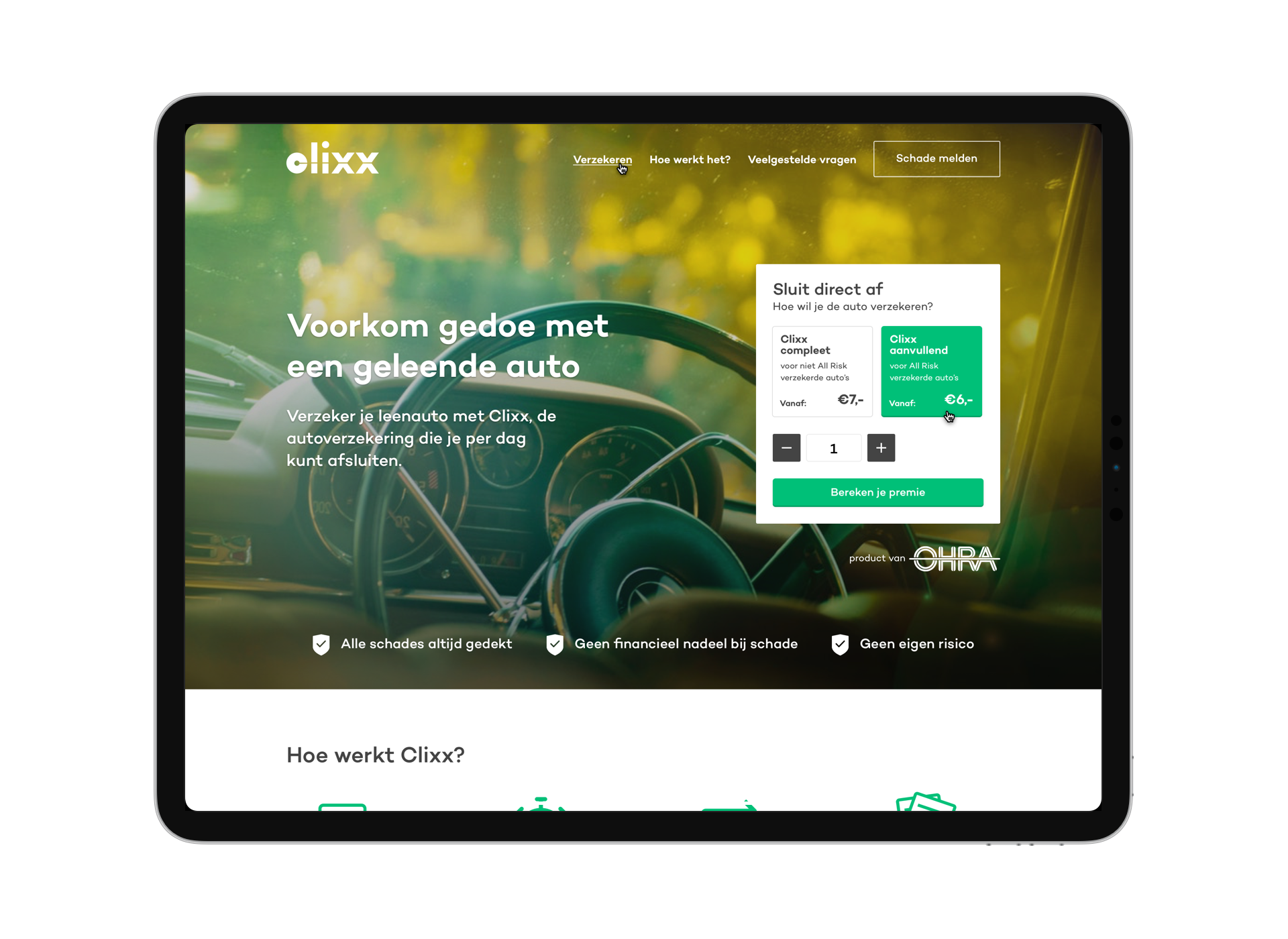 Het kan best een risico zijn om een propositie direct onder een merk te releasen. OHRA koos er daarom ook voor om het onder de naam Clixx aan de man te brengen. Een gewaagde propositie, maar super interessant! Er was wel een dingetje, het ontwerp moest af binnen 2 dagen. Dat was natuurlijk wel een uitdaging.